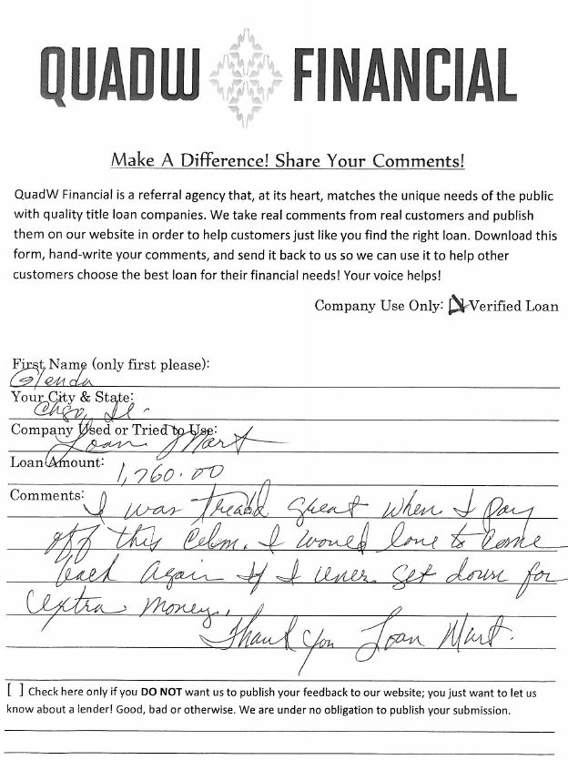 We don't offer title loans in your state might be able to help with a personal loan or credit card.