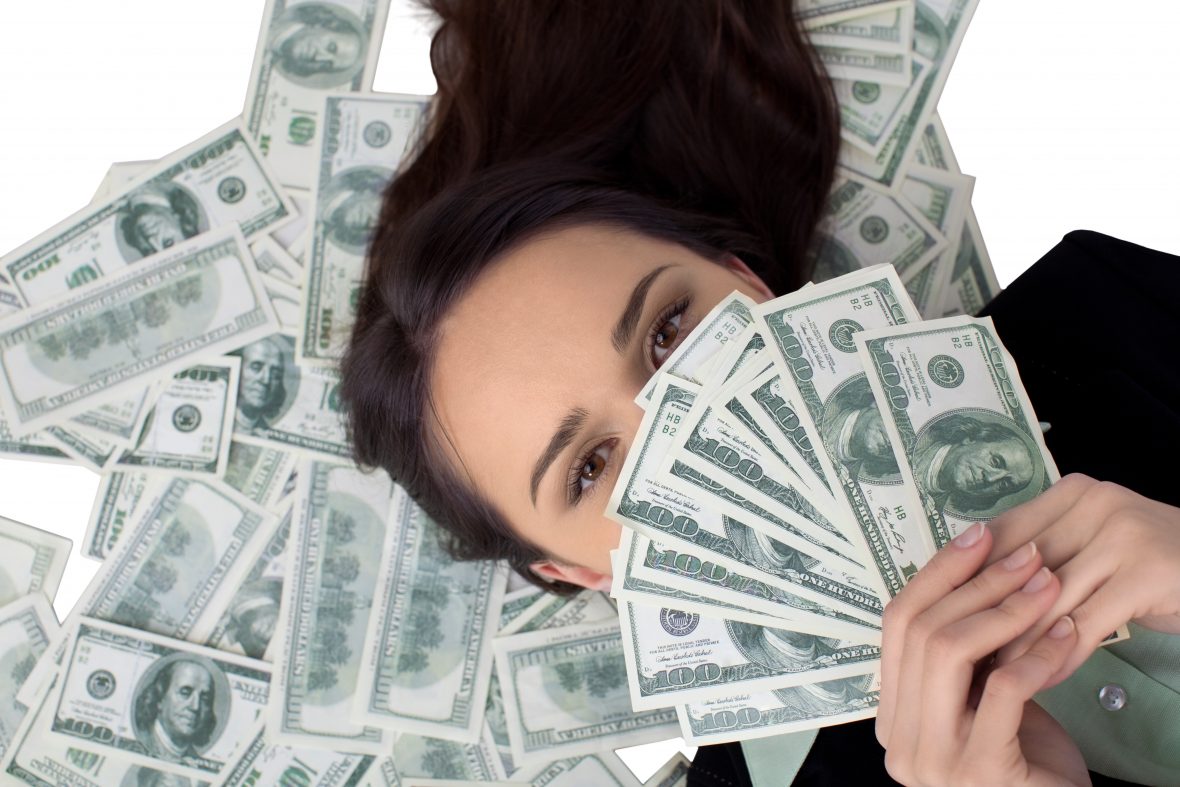 Businesswoman Holding Money – Isolated